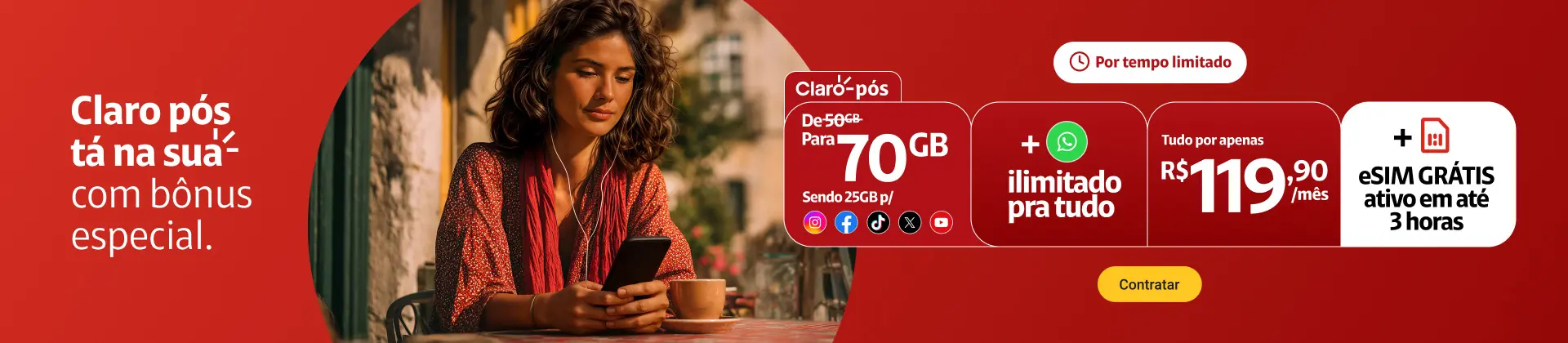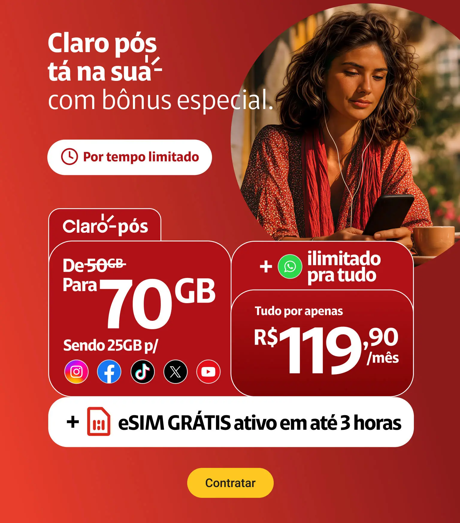 Claro Pós, e terão uma quantia exclusiva de Giga para você poder