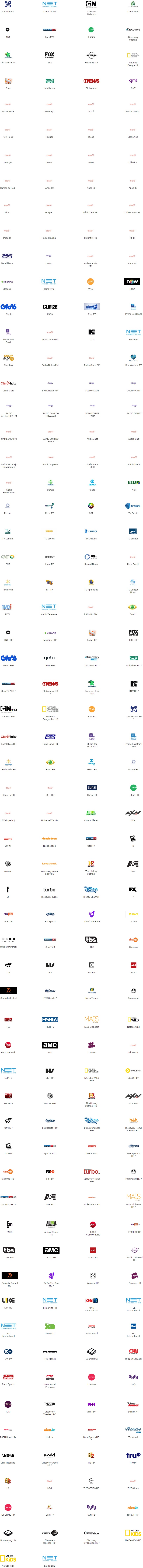 Conheça os 206 canais do pacote.